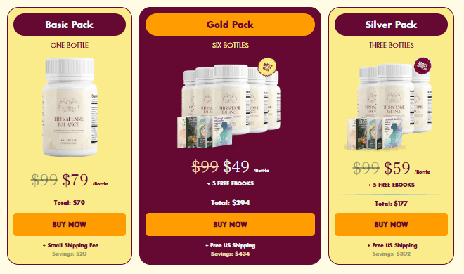 **💖 6 Bottles (Gold Pack)** – A **180-day supply** — the best-value option and ideal for long-term results. It provides continuous support for thyroid balance, energy, and hormonal wellness. Plus, you’ll receive **5 FREE eBooks** and **Free U.S. Shipping**, saving you the most money overall.